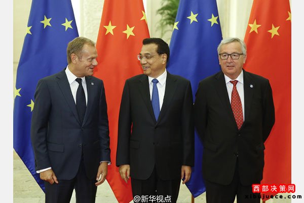 新華網(wǎng)北京7月12日電國務(wù)院總理李克強(qiáng)12日下午與歐洲理事會主席圖斯克、歐盟委員會主席容克共同主持第十八次中國歐盟領(lǐng)導(dǎo)人會晤。雙方就鞏固中歐政治互信、穩(wěn)步落實合作共識、加強(qiáng)國際和地區(qū)事務(wù)中的溝通與協(xié)調(diào)等深入交換意見。(據(jù)新華社“新華視點(diǎn)”微博報道)