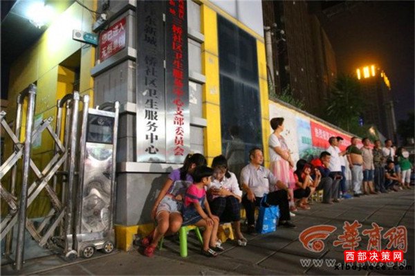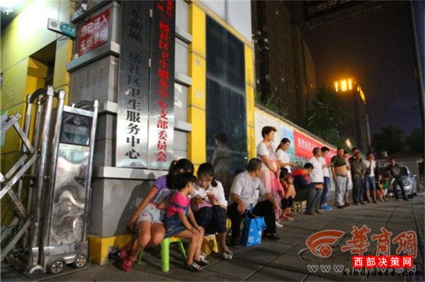 昨晚10時(shí),西安市灃東新城三橋社區(qū)衛(wèi)生服務(wù)中心大門口,30余名家長(zhǎng)排起了長(zhǎng)隊(duì),為了給入托孩子體檢,他們要一直等到31日早上7點(diǎn)醫(yī)院開(kāi)始發(fā)號(hào)。