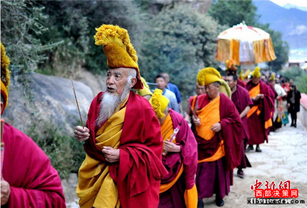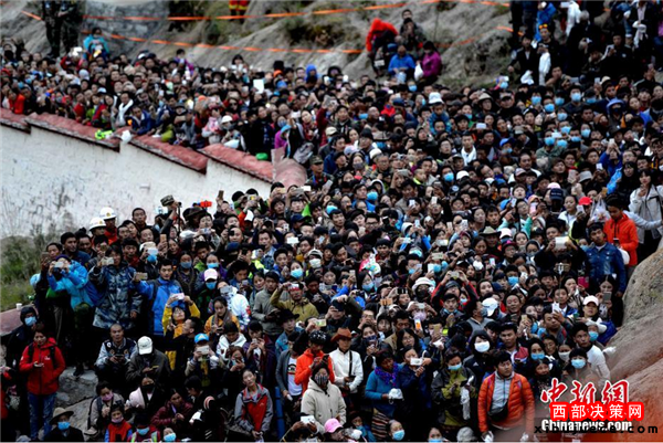 9月1日,背著釋迦牟尼佛像的僧人走向展佛臺(tái)。當(dāng)日,西藏自治區(qū)拉薩市哲蚌寺舉行盛大的展佛活動(dòng)(即展示巨幅釋迦牟尼佛像唐卡)。數(shù)十萬(wàn)信教民眾以及游客前往哲蚌寺朝佛,就此拉薩一年一度的雪頓節(jié)正式拉開(kāi)帷幕。拉薩雪頓節(jié)起源于公元11世紀(jì)中葉,于2006年被列入中國(guó)首批非物質(zhì)文化遺產(chǎn)保護(hù)名錄。