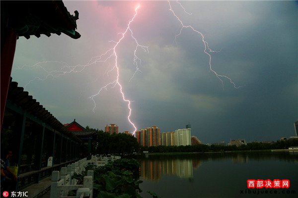 雷雨突如其來光顧北京城區(qū) 閃電劃破天際