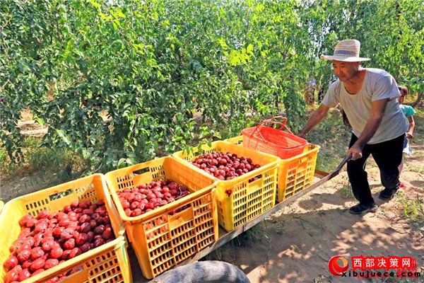 新疆哈密市伊州區(qū)五堡鎮(zhèn)棗農(nóng)們正在摘棗