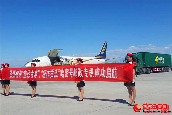 9月12日19:32分,一架裝載“密作”哈密古棗、“密作”哈密貢瓜的郵政專機(jī)從新疆哈密機(jī)場啟航首航廣東,將于13日凌晨抵達(dá)深圳機(jī)場。