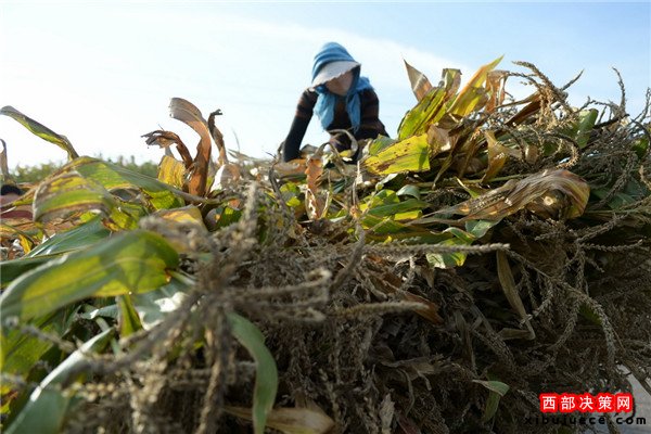9月28日,在定西市隴西縣德興鄉(xiāng)營門村,一位農民在清理自家地里已經旱死的玉米。