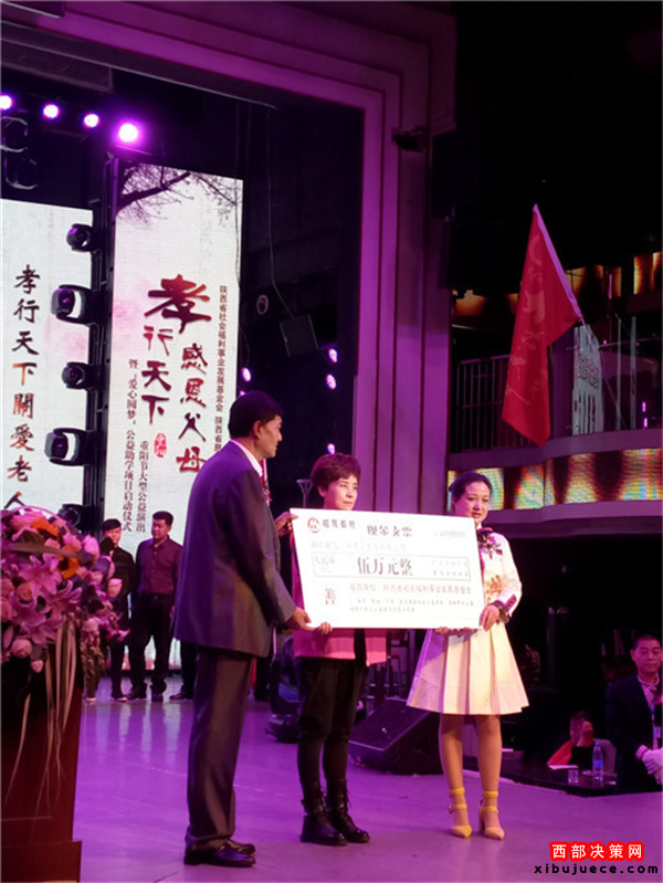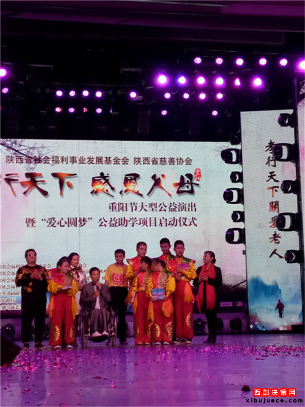 西部決策網(wǎng)訊 我國傳統(tǒng)的節(jié)日“九九重陽”也是“老人節(jié)”。值此佳節(jié)良晨,在西安金翅鳥演藝隆重舉行了由陜西省民政廳指導(dǎo),陜西省社會福利事業(yè)發(fā)展基金會攜手陜西省慈善協(xié)會聯(lián)合主辦,陜西省社會福利發(fā)展基金會主持人專項基金委員會、陜西賓悅文化傳媒有限公司承辦,以及陜西省社會福利事業(yè)發(fā)展基金會陜北力量專項基金委員會、陜西省社會福利事業(yè)發(fā)展基金會關(guān)公文化專項基金委員會、陜西省社會福利事業(yè)發(fā)展基金會陜北民歌專項基金委員會、陜西省社會福利事業(yè)發(fā)展基金會影視文化專項基金委員會聯(lián)合協(xié)辦的“孝行天下感恩父母”大型公益演出暨“愛心圓夢”公益助學(xué)項目隆重啟動。