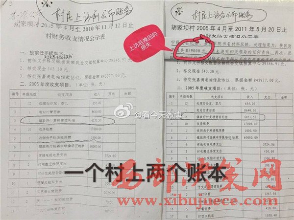 據(jù)實名舉報材料了解,早在2011年5月16日,經(jīng)群眾上訪,寧強縣縣紀(jì)委、縣檢察院就對黨支部書記劉全忠作出過處理,挽回財產(chǎn)損失859000元,但并未追究其法律責(zé)任。從胡家壩村公布的賬目來看,村民上訪前和上訪后僅“鎮(zhèn)政府付復(fù)耕青苗補償”單這一款項就有300元的出入。一個村子竟然存在兩本財政收支賬目,到底哪本賬才是胡家壩村真正的財政收支賬目呢?為什么要做兩本性質(zhì)相同的賬?會不會該村還有第三本賬?
