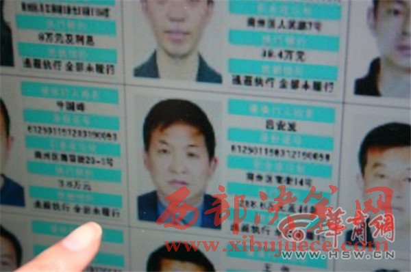 16日上午,在商洛市區(qū)北新街廣場(chǎng)等7處人口密集地段張貼著帶有32名被執(zhí)行人大頭照的公告,引來(lái)不少人圍觀。“老賴(lài)榜”上有一人,盡管未寫(xiě)明具體單位身份,但不少市民還是認(rèn)出來(lái)了。“那不是安監(jiān)局的呂副局長(zhǎng)嗎?欠了人家280多萬(wàn)元呢。”圍觀人群中有人說(shuō)。