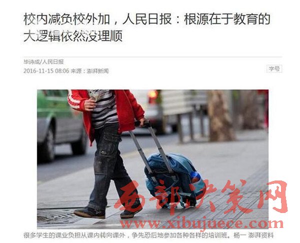 是學校錯了嗎?學校響應行政命令,給學生減負。這幾年學生的課業(yè)負擔從校內(nèi)轉到校外,從側面說明減負也有了一定成效。