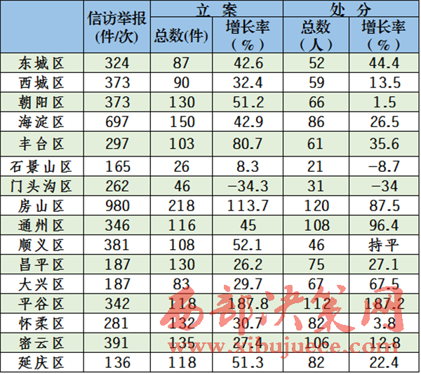 11月18日電據(jù)中央紀委監(jiān)察部網(wǎng)站消息,2016年1至10月北京市各級紀檢監(jiān)察機關(guān)共接受紀內(nèi)信訪舉報12182件(次),立案2388件。給予黨紀政紀處分1720人,其中,廳局級32人,縣處級366人,鄉(xiāng)科級345人。移送司法73人。查處違反中央八項規(guī)定精神和市委實施意見364人,“小官貪腐”328人。