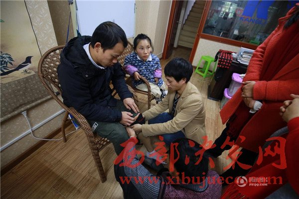 鄰居的針灸店給江海洪的老公進行免費治療,希望他能夠向常人一樣聽到外面的聲音。