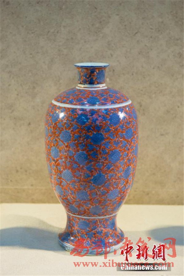 明萬歷青花礬紅彩纏枝蓮梅瓶。
