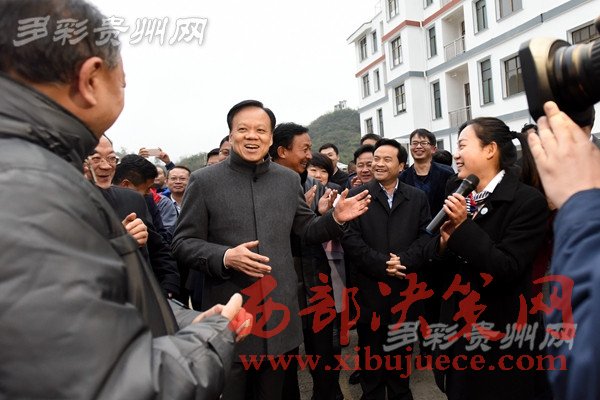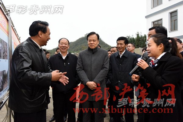 陳敏爾一行認(rèn)真聽取黔西縣綠化鄉(xiāng)馬坎村安置點(diǎn)“兩短”“兩長(zhǎng)”的產(chǎn)業(yè)脫貧致富路子的介紹