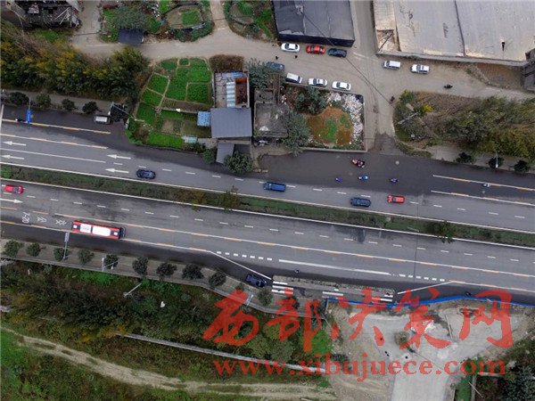 11月24日,在成都市錦華路三段祝國寺八組航拍中立路中央8年的釘子戶,在現(xiàn)場看到:駛?cè)脒M城方向的車輛到該處時不得不減緩速度,原本三車道的設(shè)計現(xiàn)在只有一條道能同行,機動車與非機動車也共用同一條車道。