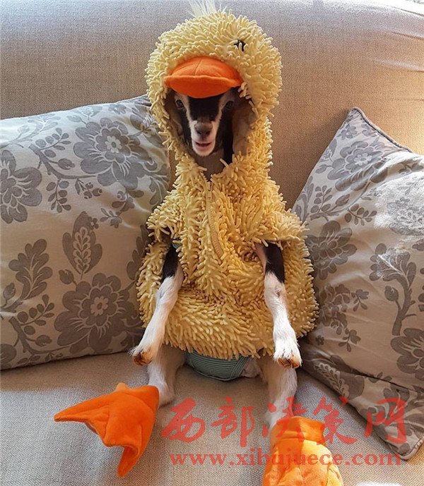 小鴨子服不僅為小羊的可愛加了分,還緩解了Polly的焦慮癥?,F(xiàn)在只要Polly的焦慮癥再發(fā)作,琳恩就會給它穿上小鴨子服,Polly就會馬上睡著。