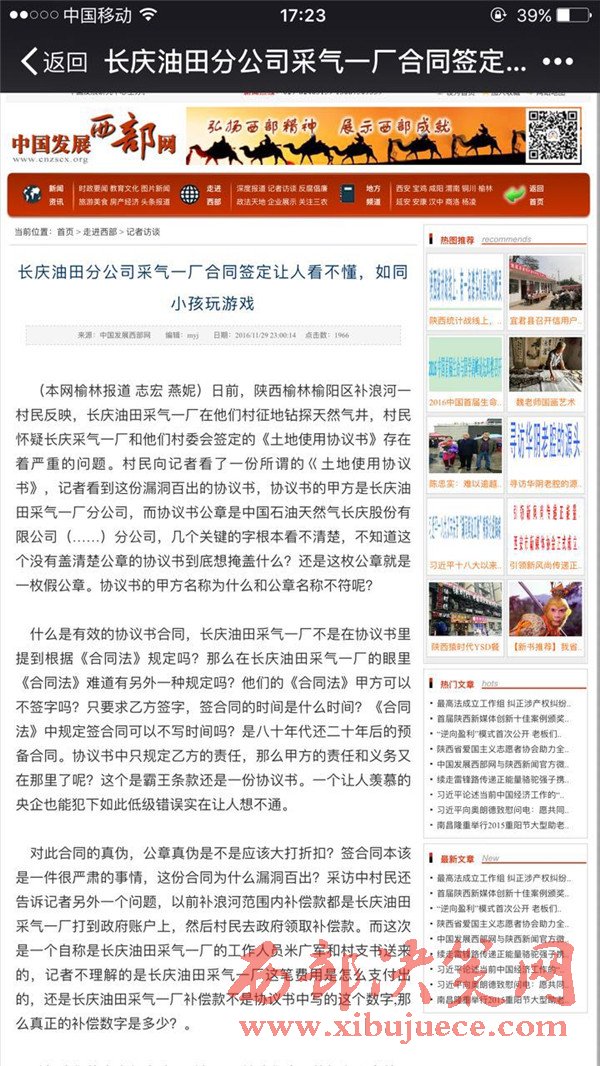 希望我們的央企長慶油田采氣一廠給我們合理的解釋和交待。對于此事本站記者持續(xù)追蹤報道。( 志宏 燕妮)