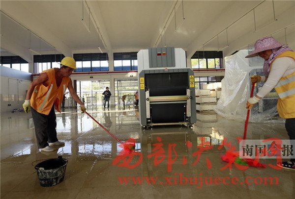 下月5日,全國(guó)鐵路調(diào)圖,將有7對(duì)普速列車(chē)改停柳江站。作為柳州市區(qū)范圍內(nèi)的第二個(gè)客運(yùn)火車(chē)站,柳江站的改造項(xiàng)目已進(jìn)入尾聲,安檢掃描儀也搬進(jìn)了候車(chē)室。圖為工人昨日在車(chē)站進(jìn)行地面清潔,為迎接四方旅客做好準(zhǔn)備。