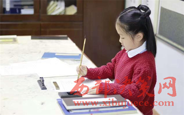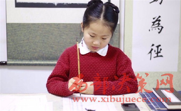 圖為小女孩在認(rèn)真書寫