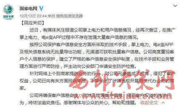 原標(biāo)題:國(guó)家電網(wǎng)被爆千萬(wàn)用戶信息泄露?國(guó)網(wǎng)緊急開(kāi)會(huì)后深夜回應(yīng)