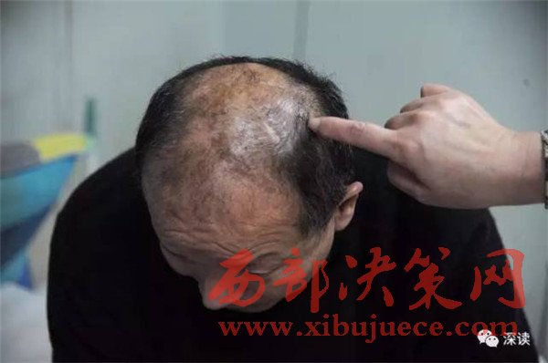 由于內(nèi)分泌失調(diào),直到現(xiàn)在,被補上的部分,都比其他地方亮。上面散布著零星的頭茬。