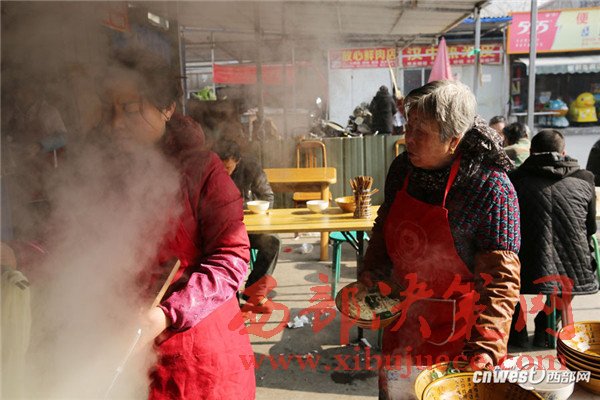 西安南二環(huán)附近的一條小巷里,新安醫(yī)院門口,70歲的賀玉蘭老人和兒媳劉艷寧在她們的實(shí)惠面館里忙碌著,揉面、拉條子、下面、給食客端面,婆媳倆默契得就像一個(gè)人,“二人成一心,黃土變成金。” 賀玉蘭老人喜歡老家蒲城的這句老話。