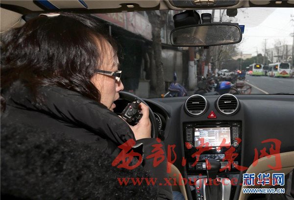 1月12日,上海市閔行公安分局刑偵支隊(duì)街面犯罪偵查隊(duì)反扒組組長(zhǎng)姜峻在蹲守的車(chē)上用電臺(tái)呼叫隊(duì)員。