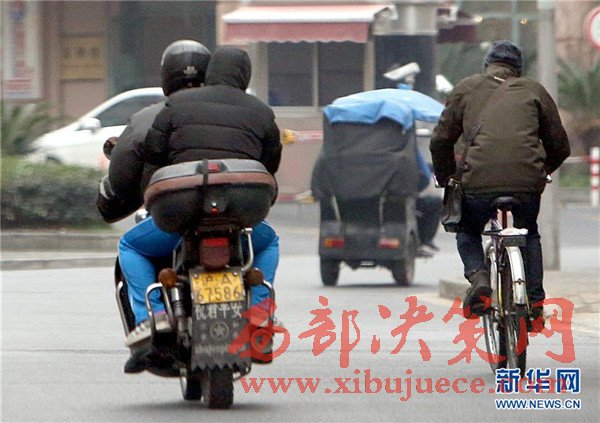 1月12日,反扒隊(duì)員乘坐摩托車(chē)跟蹤扒竊嫌疑人乘坐的電動(dòng)三輪車(chē)。