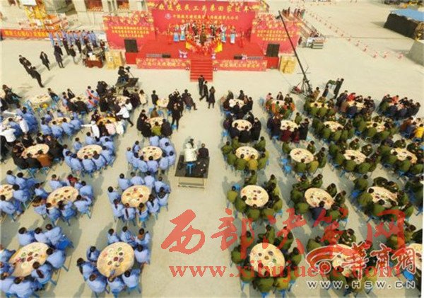 “大家雖在一個工地干活,但聚在一起吃飯還是第一次!”昨日上午10時30分,在該項目工地的一塊廣場上,120張桌子擺在中間場面相當(dāng)震撼,廣場西側(cè),20多位廚師正在為這頓團圓飯而忙碌著。