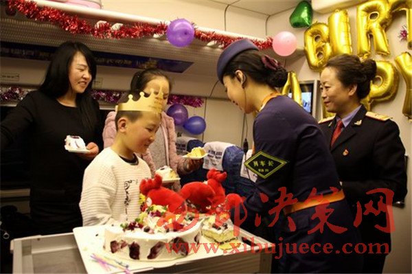 “祝你生日快樂”,2月5日,在蘭州西開往西寧的D2723次列車上,為一對“天路母子”舉行的別樣生日聚會引得網名點贊無數。