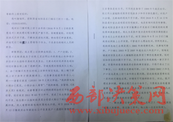 2016年12月14日,魯鋼軍來(lái)到旬陽(yáng)縣紀(jì)委,向現(xiàn)任旬陽(yáng)縣紀(jì)委書(shū)記付波反映該事件,付書(shū)記給予書(shū)面登記,并口頭承諾盡快解決。