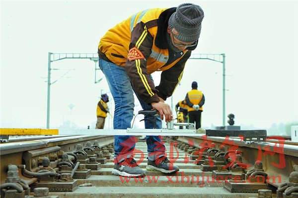 西安鐵路局綏德工務(wù)段職工檢查線路鋼軌狀況。該段通過機車添乘和徒步檢查等方式,加大對凍害、道岔等地段檢查力度,對發(fā)現(xiàn)問題,根據(jù)嚴(yán)重程度,及時申請臨時要點進(jìn)行整治,確保春運期間運輸安全。