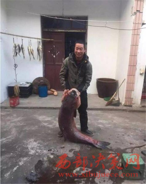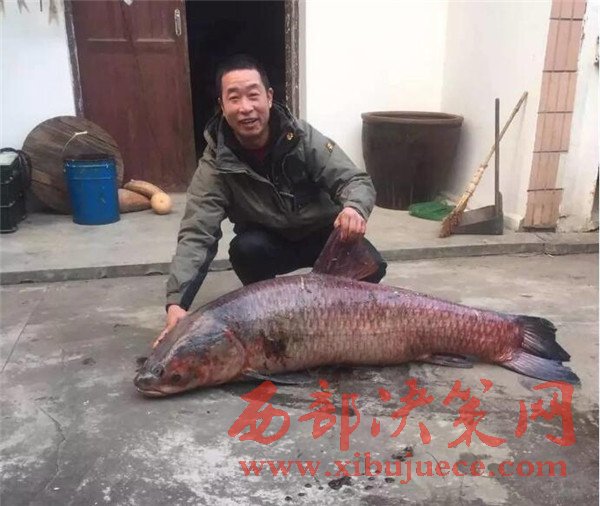 2017年2月13日報道,江蘇鹿苑的邱大哥平時喜歡釣魚,春節(jié)期間,他閑來無事,便約上幾個親朋好友到雙山島垂釣,結(jié)果釣到了一條凈重52.2公斤(約104斤),長1.27米的烏青魚。