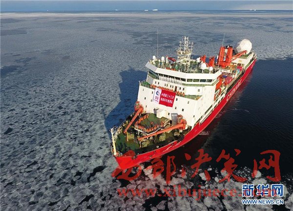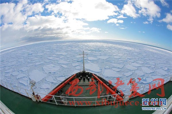 破冰前往麥克默多灣方向的“雪龍”號科考船(2月9日攝)。