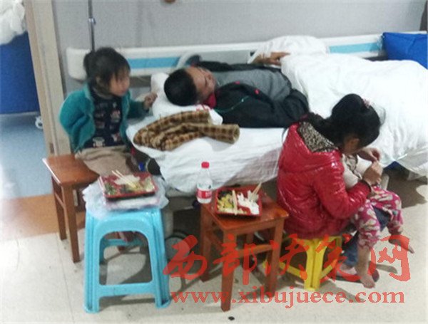 當(dāng)天下午,記者來(lái)到醫(yī)院,見到了王先生一家2個(gè)大人,4個(gè)孩子6口人。王先生躺在病床上,正吸著氧氣,三個(gè)孩子圍在王先生身邊,王先生妻子還背著尚在襁褓中的小女兒。
