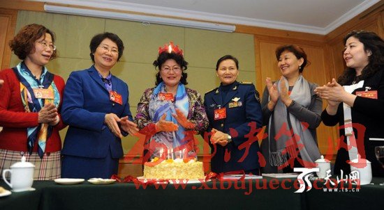 這是一次為6位女委員慶祝節(jié)日的聚會,更是一次民族團結(jié)的聯(lián)誼。6位女委員分別來自漢族、維吾爾族、錫伯族、烏孜別克族、柯爾克孜族,姐妹們在一起參加全國兩會已有5年,雖然并不在同一個界別,但大家互幫互學互助,早已結(jié)下了深厚的友誼。每年“三八”婦女節(jié)都恰逢全國兩會,姐妹們相聚在一起,同慶節(jié)日,親如一家。