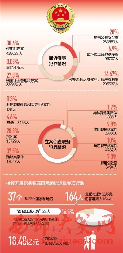 去年一年,檢察機(jī)關(guān)共立案?jìng)刹槁殑?wù)犯罪47650人,其中包括21名原省部級(jí)干部,對(duì)令計(jì)劃、蘇榮等48名原省部級(jí)以上干部提起公訴。檢察機(jī)關(guān)繼續(xù)開展集中整治和加強(qiáng)預(yù)防扶貧領(lǐng)域職務(wù)犯罪專項(xiàng)工作,查辦相關(guān)職務(wù)犯罪1892人,同比增長(zhǎng)102.8%。此外,還在征地拆遷、社會(huì)保障等民生領(lǐng)域查辦“蠅貪”“蟻貪”17410人。