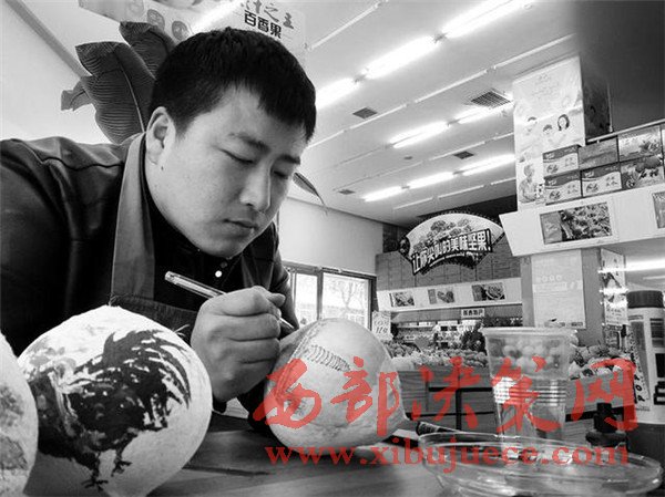 銀慧君算是找到了“用武之地”。他學(xué)的是國(guó)畫(huà),賣(mài)的是水果,如何把興趣和工作結(jié)合起來(lái),他想了一個(gè)辦法:在賣(mài)的椰子殼上作畫(huà)。