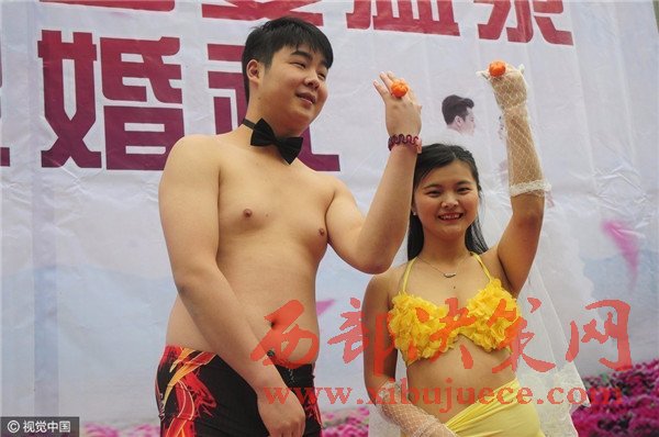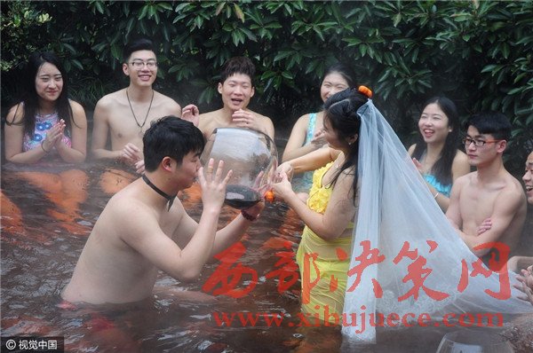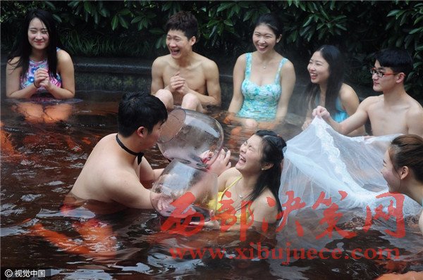 杭州現(xiàn)溫泉南瓜婚禮 新人賓客泳裝參加畫風奇特