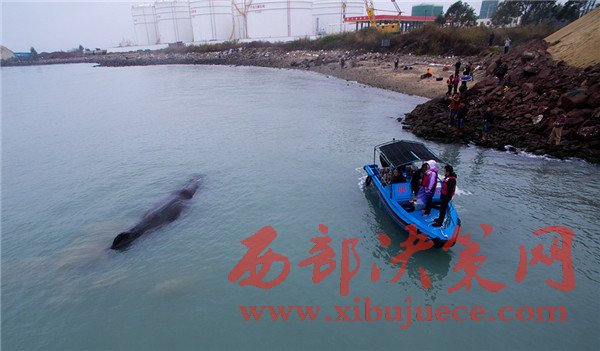 3月14日,救助誤入廣東大亞灣海域抹香鯨的行動繼續(xù)。據(jù)廣東省惠州市海洋與漁業(yè)局通報,13日晚抹香鯨游入惠州港油庫碼頭附近海域,專家根據(jù)現(xiàn)場情況反饋:鯨魚身體狀況不佳。14日下午,抹香鯨呼吸次數(shù)減少,游動速度減慢甚至停滯不前,情況不容樂觀。隨著潮水退去,可以判定鯨魚已經(jīng)擱淺。