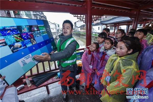 3月22日,織里鎮(zhèn)漾西小學的孩子們在鄉(xiāng)鎮(zhèn)巡河員及水質監(jiān)測員的陪同下,學習水樣采集、排污勘測等方面的知識。這些孩子都是當?shù)氐?ldquo;小小河長”,定期負責相關河道的水質監(jiān)控。當日是第二十五屆“世界水日”,浙江省湖州市吳興區(qū)織里鎮(zhèn)的鎮(zhèn)級河長、民間巡河員帶著漾西小學的“小小河長”們在常樂村邵洋里河沿線對河面、河岸保潔情況進行勘察、記錄。工作人員還給這些“小小河長”們上了一堂水質監(jiān)測環(huán)保課,并現(xiàn)場采集水樣進行比對,增強相關理論和實踐知識。近兩年來,織里鎮(zhèn)全面推進“河長制”,積極探索治水新模式,在退休干部、黨員、童裝業(yè)主、學生等各類群體中創(chuàng)設一批“黨員河長”“青年河長”“小小河長”等,盡可能讓更多的人參與到河道整治、水體治理的工作中。
