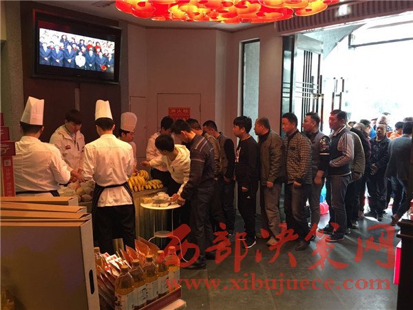 在現(xiàn)場記者看到,旺順閣魚頭泡餅門口工作人員指引的士司機(jī)們到指定車位,兩邊迎賓工作人員熱情接待每位到來的賓客。陸續(xù)到達(dá)的出租車已有近百輛,有序的一字排開,個個的哥臉上洋溢著燦爛的笑容,暢談寒暄,快樂的等待著。中午12時,旺順閣魚頭泡餅西安財富中心店總經(jīng)理呂貴朋女士宣布活動正式開始。