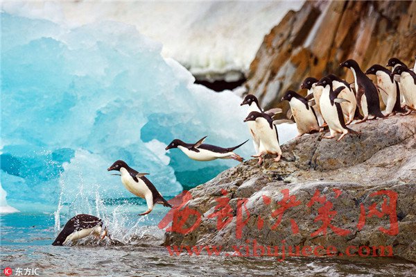 攝影師兼導(dǎo)游DaveMerron在南冰洋帶隊(duì)旅游時(shí)邂逅一群重返海洋的企鵝,這群可愛(ài)的小家伙排著隊(duì)站在巖石上,一個(gè)接一個(gè)跳進(jìn)海洋“泡澡”,不遠(yuǎn)處的冰山掩映著它們張開(kāi)小短翅膀起飛的身影,畫(huà)面十分美好。