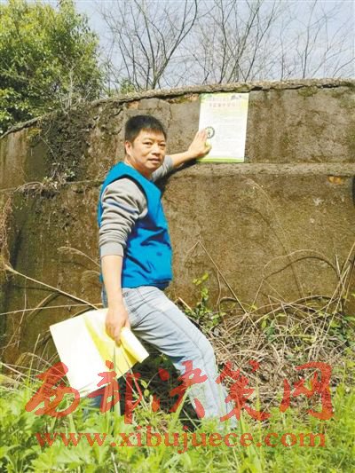 毛建偉在湘潭法華山張貼愛(ài)鳥(niǎo)宣傳海報(bào)。