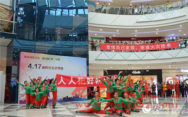 4月17日上午,在哈西萬達(dá)廣場以小虎隊(duì)經(jīng)典歌曲《愛》為背景音樂的舞蹈拉開了哈爾濱市消防支隊(duì)南崗大隊(duì)2017年“4·17”消防宣傳日活動的序幕。舞蹈的表演者全部為南崗大隊(duì)的消防官兵,歡快的樂曲和官兵們整齊的舞蹈動作吸引了市民紛紛駐足觀看宣傳活動。