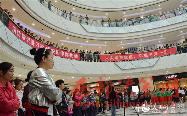 哈爾濱消防支隊(duì)南崗大隊(duì)表演“快閃舞”。