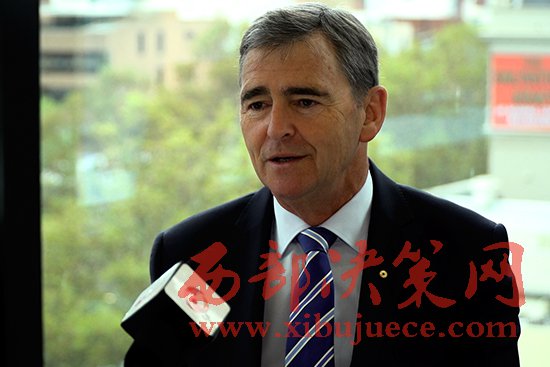 澳大利亞中國(guó)工商業(yè)委員會(huì)主席、維多利亞州前州長(zhǎng)約翰·布倫比接受記者采訪