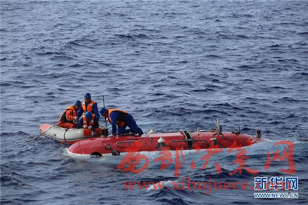 5月23日,“蛟龍”號完成下潛準(zhǔn)備回到“向陽紅09”科學(xué)考察船上。