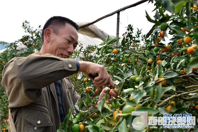 近年來,廣西融安縣因地制宜,把金桔列為扶貧增收的重要產(chǎn)業(yè),通過農(nóng)業(yè)獎補政策、專業(yè)種植技術培訓等鼓勵貧困戶種植金桔,助力脫貧。融安縣大將鎮(zhèn)雅仕村的貧困戶漆昭賢,曾常年在外地打工,生活條件艱苦。2014年在縣里政策引導下,他返鄉(xiāng)種植金桔,并獲得專項補貼和無息貸款,連續(xù)三年參加縣農(nóng)業(yè)局等單位舉辦的種植技術培訓班。如今,漆昭賢不僅在自己的地里種金桔,還承包了周圍農(nóng)戶的土地,種植面積十余畝,今年預計產(chǎn)量可達16000斤,純收入有望達到4萬元。記者李絢麗攝