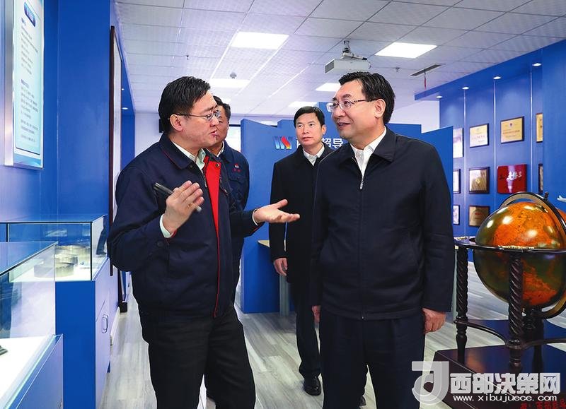 12月14日,省委書記、省長胡和平深入西北有色金屬研究院調(diào)研。圖為他在西部超導(dǎo)材料科技股份有限公司產(chǎn)品展示室聽取產(chǎn)品性能、應(yīng)用領(lǐng)域等介紹。陜西日報(bào)記者宋紅梅攝