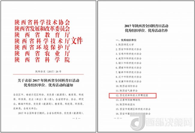 西農(nóng)大博覽園獲評(píng)2017年陜西省全國(guó)科普日活動(dòng)優(yōu)秀組織單位
