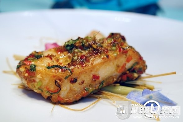 銀鱈魚用來自西雙版納的香料腌漬后,進行烤制,風味獨特,鮮中帶辣。