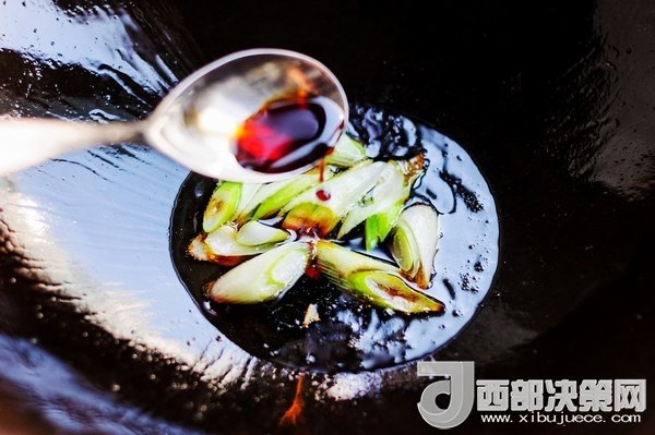 鍋里調(diào)進(jìn)豉油,倒人少量清水大火炒成味汁。